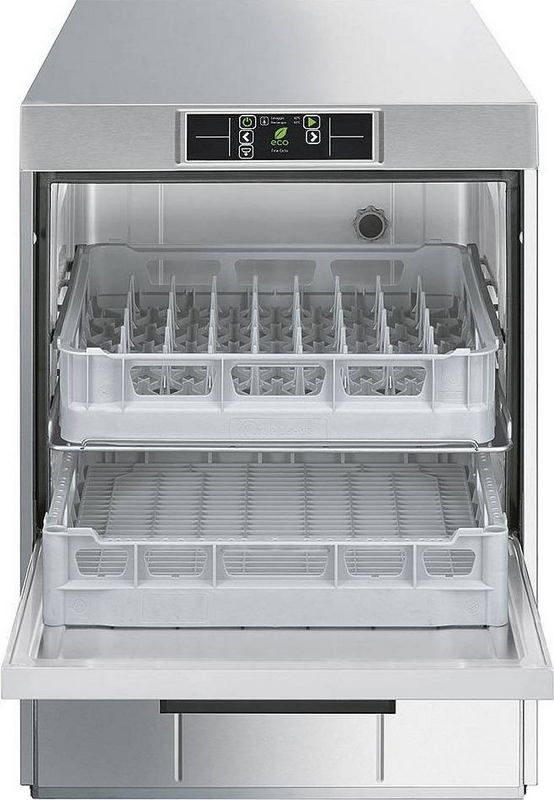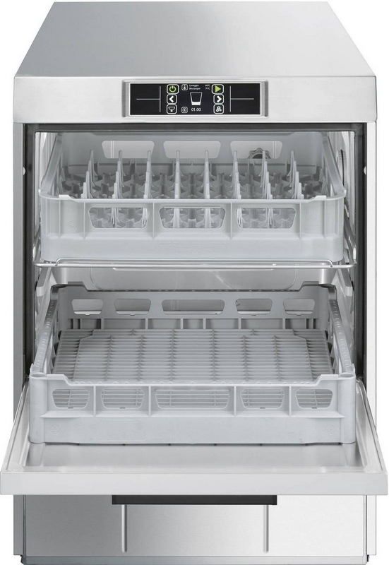 Фронтальная посудомоечная машина SmegUD522D— высокопроизводительная модель, способная одновременно отмывать 2 кассеты с посудой. Актуальна для заведений большой проходимости. Предназначена для мытья посуды любого типа, включая кастрюли, гастроёмкости.