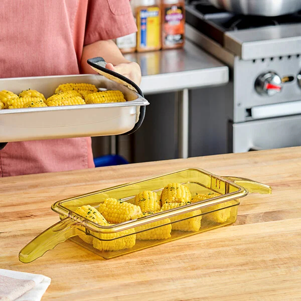 Гастроемкость Cambro H-PAN 32HP2HU-150 GN1/3х65 с 2-мя ручками, поликарбонат, 2,4 л— может использоваться для подогрева продуктов на пару, в микроволновых печах и морозильных камерах.