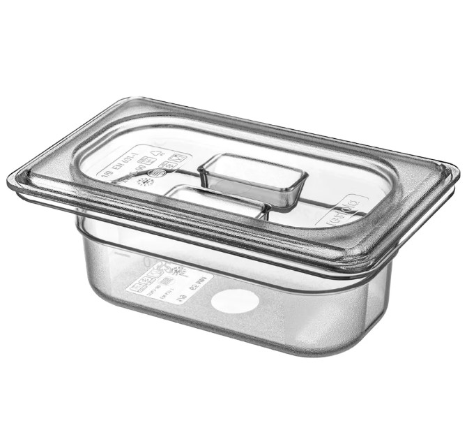 Гастроемкость RESTOLA 1/9 H 65 мм— изделие может использоваться на предприятиях общественного питания для хранения, замораживания и разогревания пищи, а также в кейтеринговых компаниях для транспортировки готовой еды. Размеры производимых гастроемкостей являются унифицированными в соответствии со стандартом Gastronorm и позволяют использовать их совместно с современным кухонным оборудованием и инвентарем.