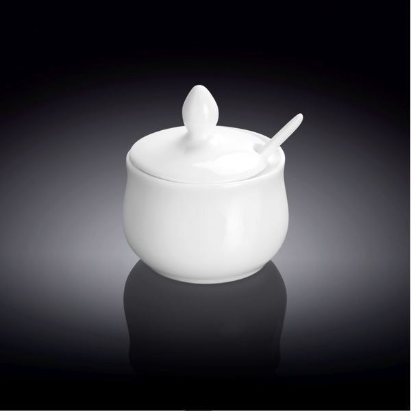 Горчичница Wilmax с ложкой 130 мл— предназначена для подачи горчицы, соусов, выполнена из высококачественного фарфора. Благодаря уникальной рецептуре материала, в состав которой включены соединения магния и алюминия, изделия обладают исключительной белизной (как на поверхности, так и на изломе), прочностью, устойчивостью к сколам. Особый состав глазури обеспечивает гладкость и блеск поверхности изделий.