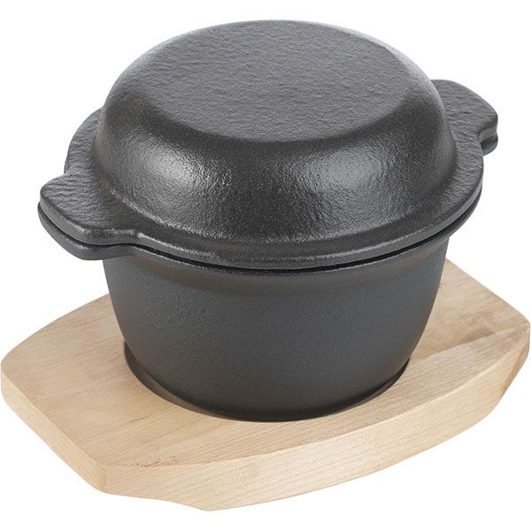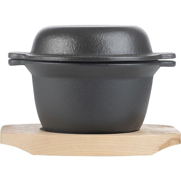Горшок для запекания ProHotel Ember Cast Matt 12501WB 300 мл, D 115 мм, H 65 мм, чугун/дерево артикул 3051914