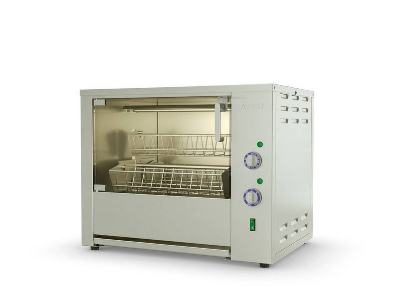 Гриль для кур Атеси Командор-4Э-Т (карусельный)– может применяться в заведениях общественного питания и объектах торговли для приготовления тушек кур, цыплят, перепелок, куриных грудок и окорочков.
