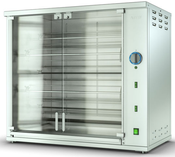 Гриль для кур Атеси Командор-2/5-Э – незаменимый компактный аппарат, который гармонично впишется в любое помещение сферы быстрого питания. Модель гарантирует идеальную прожарку куриных тушек и высокую скорость приготовления за счет постоянного вращения шампуров и близкого расположения ТЭНов.