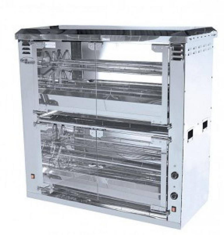Гриль для кур GRILL MASTER Ф6К2Эпредназначен для приготовления кур-гриль и субпродуктов в заведениях быстрого питания, супермаркетах и уличной торговли. Модель оснащена 2 рабочими камерами с мотор-редукторами. Благодаря непрерывному вращению тушек кур непосредственно возле нагревателей, обеспечивается их равномерное запекание. Изделие и корзины для кур выполнены из пищевой нержавеющей стали, дверцы и задняя стенка — из термостойкого стекла.