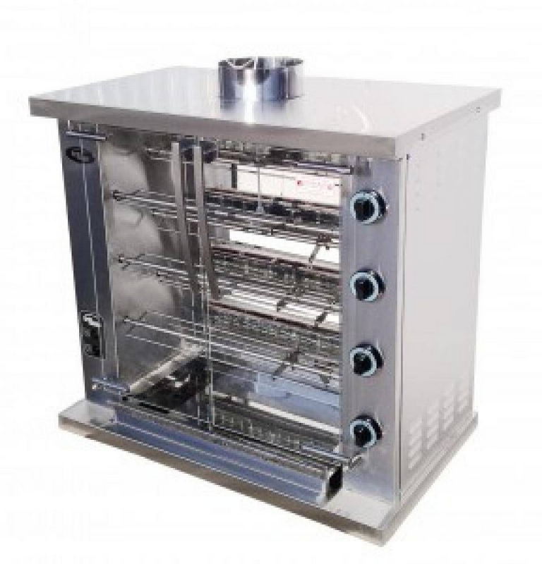 Гриль для кур GRILL MASTER Ф4У2Эпредназначен для приготовления кур-гриль и субпродуктов в заведениях быстрого питания, супермаркетах и уличной торговли. Благодаря непрерывному вращению тушек кур непосредственно возле нагревателей, обеспечивается их равномерное запекание. Корпус выполнен из пищевой нержавеющей стали, дверцы – из термостойкого стекла.