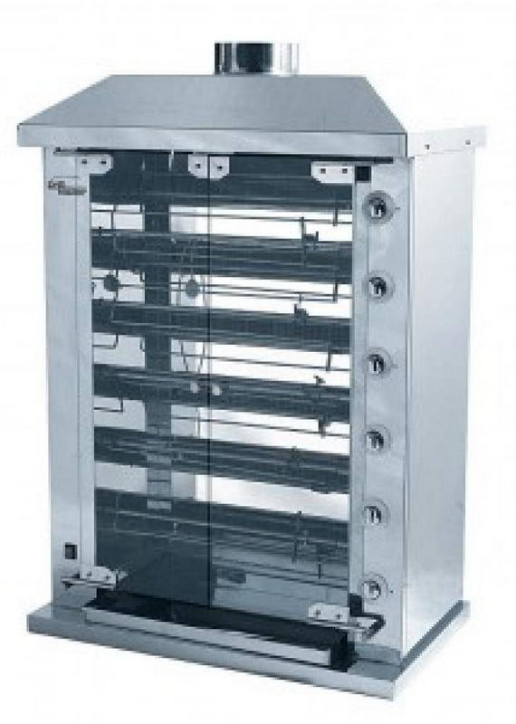 Гриль для кур GRILL MASTER Ф6Ш2Гиспользуется на предприятиях общественного питания и торговли для приготовления тушек кур, куриных окорочков, грудок и других продуктов. Шампуры вращаются около газовых горелок, что обеспечивает равномерное приготовление птицы. Выполнен полностью из нержавеющей стали. Стеклянные распашные двери.