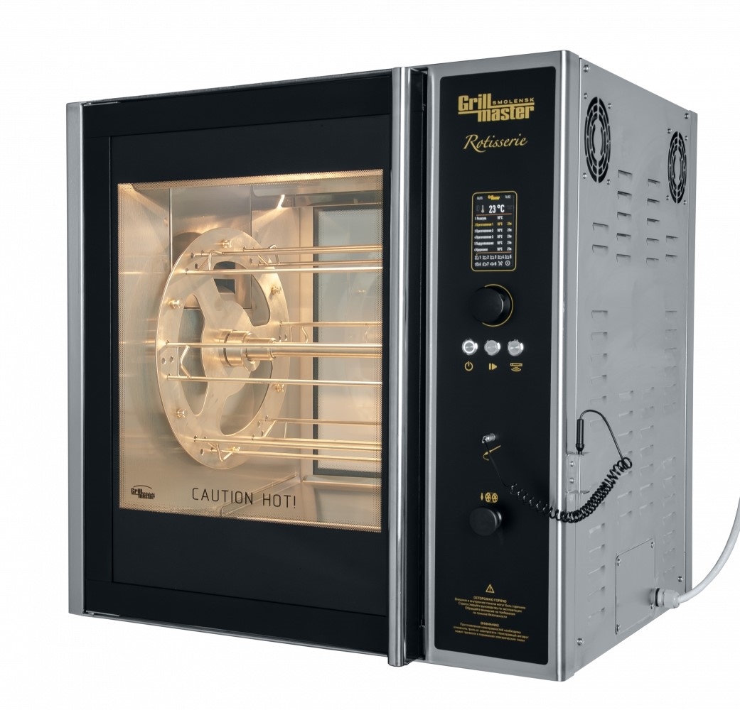 - 6 спиц для одновременного приготовления 24 тушек до 2 кг;