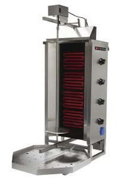 Гриль для шаурмы Tatra TDM E 4T M— применяется на профессиональных кухнях, в ресторанах, столовых, буфетах и точках фаст-фуда для обжарки мяса (курицы, свинины, говядины), сформированного в специальные заготовки цилиндрической формы и размещенного на вертикальный вертел. Равномерное приготовление мяса происходит благодаря вращению заготовки вокруг своей оси около нагревательных элементов. По мере готовности прожаренный слой мяса срезается электрическим или обычным ножом.