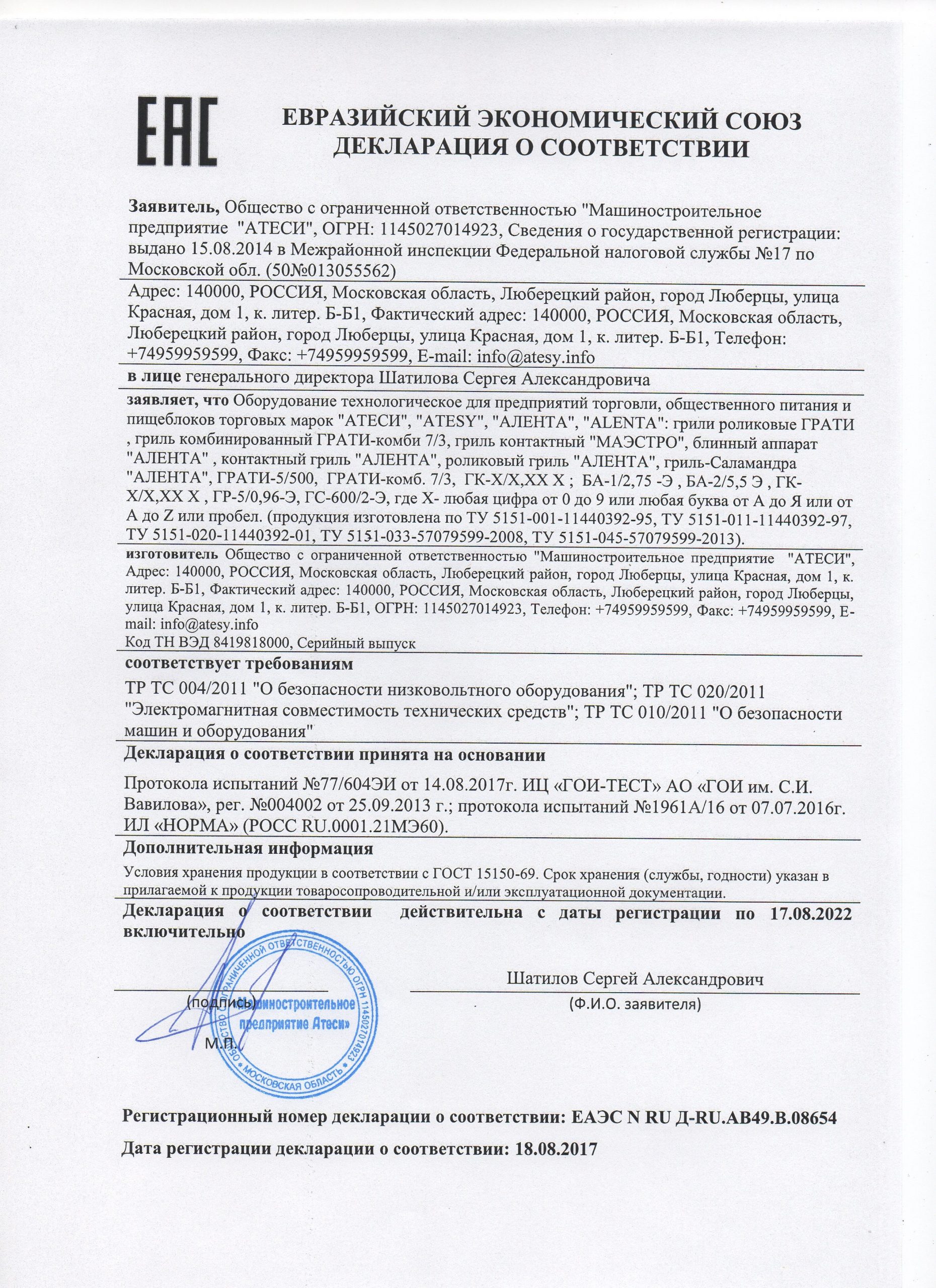 Гриль контактный Атеси Маэстро ГК-1/1.55Г-1