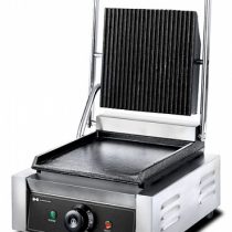 Нижняя часть гриля имеет гладкую поверхность, верхняя – рифленая. Благодаря этому после обработки на продуктах остаются аппетитные полоски. Прижимная часть гриля снабжена пружиной, которая позволяет регулировать расстояние и силу прижима.