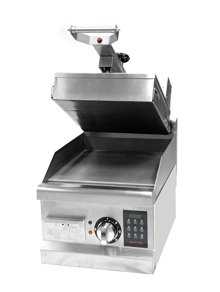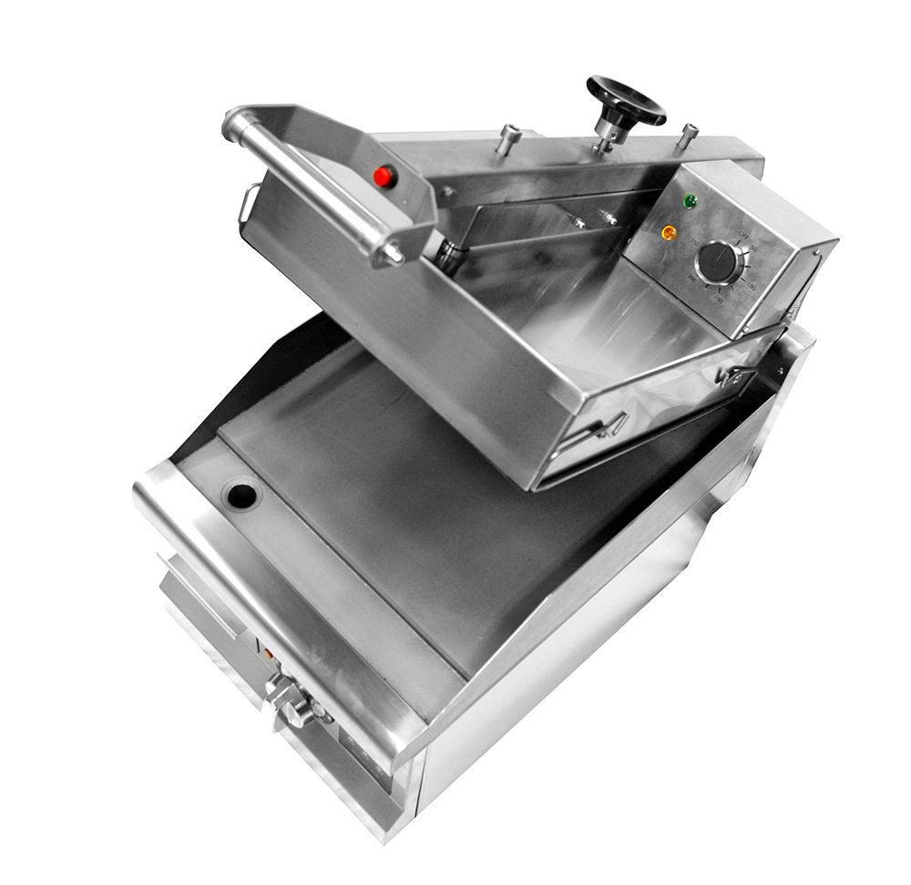 Kocateq GH33EDпредставляет собой контактный гриль, предназначенный для приготовления мяса, рыбы, птицы, а также стейков, гамбургеров, горячих бутербродов. Модель относится к профессиональному классу, аппарат может использоваться для оснащения торговых точек, В конструкции предусмотрена цифровая панель управления с 6 автоматическими программами, также присутствуют аналоговые термостаты для регулировки температуры нагрева, лоток для сбора излишков жира. В качестве материала изготовления корпуса применяется нержавеющая сталь. Нижняя пластина выполнена из теплопроводящего сплава, верхняя имеет покрытие из сменной тефлонированной стеклоткани.
