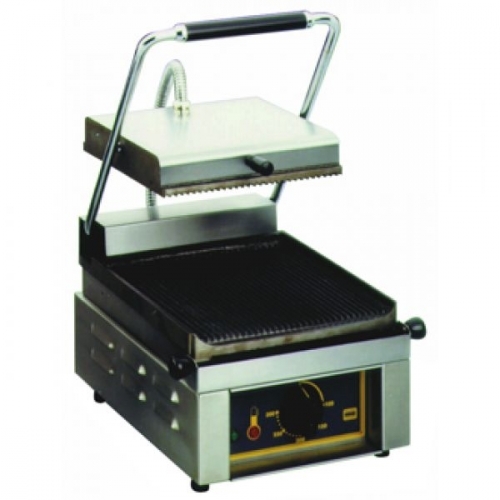 Гриль контактный, SAVOYE L производства ROLLER GRILL предназначен для жарки мяса, рыбы, сосисок и других блюд. Терморегулятор позволяет устанавливать температуру от 0 до 3000С. Рабочие поверхности могут быть изготовлены из нержавеющей стали. Гриль имеет гладкую жарочную поверхность.Наличие съемного поддона для сбора лишнего жира.Корпус выполнен из нержавеющей стали. Регулируемые ножки.