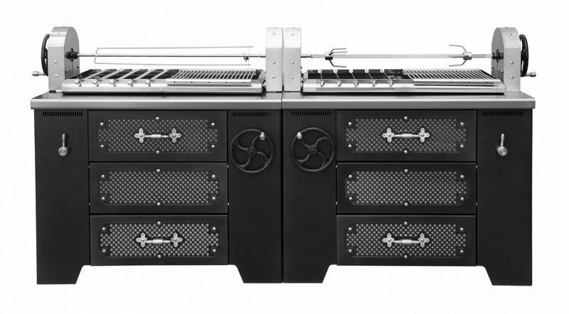 Гриль-мангал GRILL MASTER УМБ (без тумб)винтажный стиль, выполнен полностью из нержавеющей стали, дополнительно низ мангала и верх вытяжки выкрашен в черный цвет и покрыт матовым лаком.