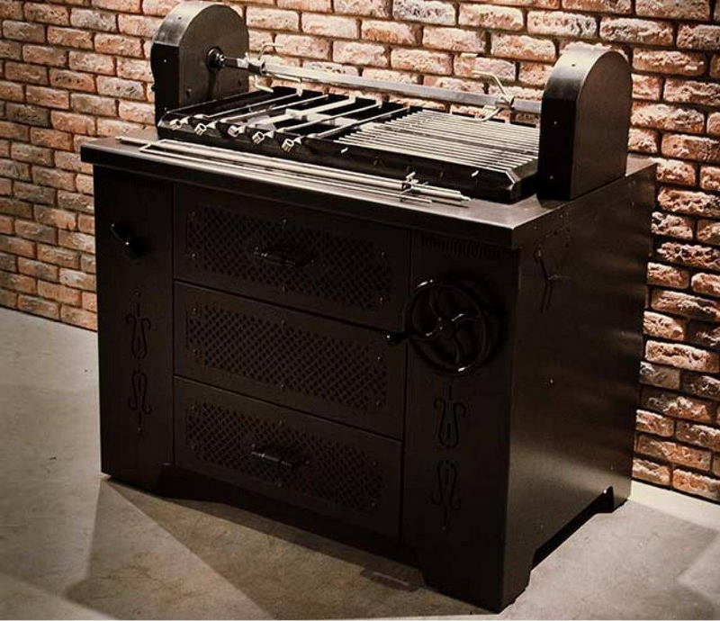 • 1 центральный шампур из нержавеющей стали для жарки барашка/попросенка/кабана/ с механическим и электрическим приводом (регулировка шампура по горизонтали);