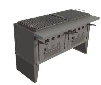 Наружные обшивки мангала и технологический стол сделаны из нержавейки.