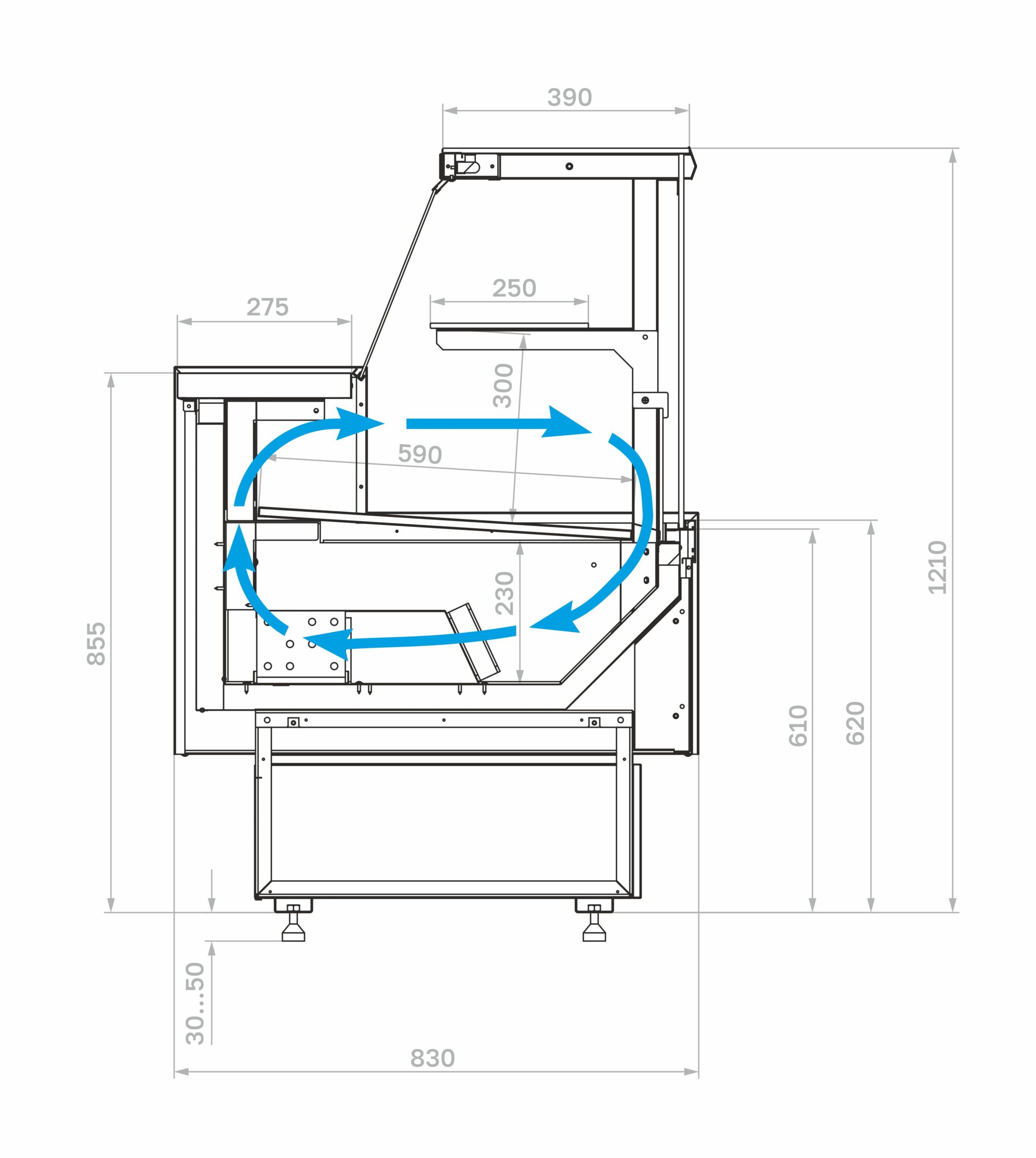Стандартная комплектация универсальной холодильной витрины Carboma Praia 2 GC85 VV 1,25-1 с боковинами