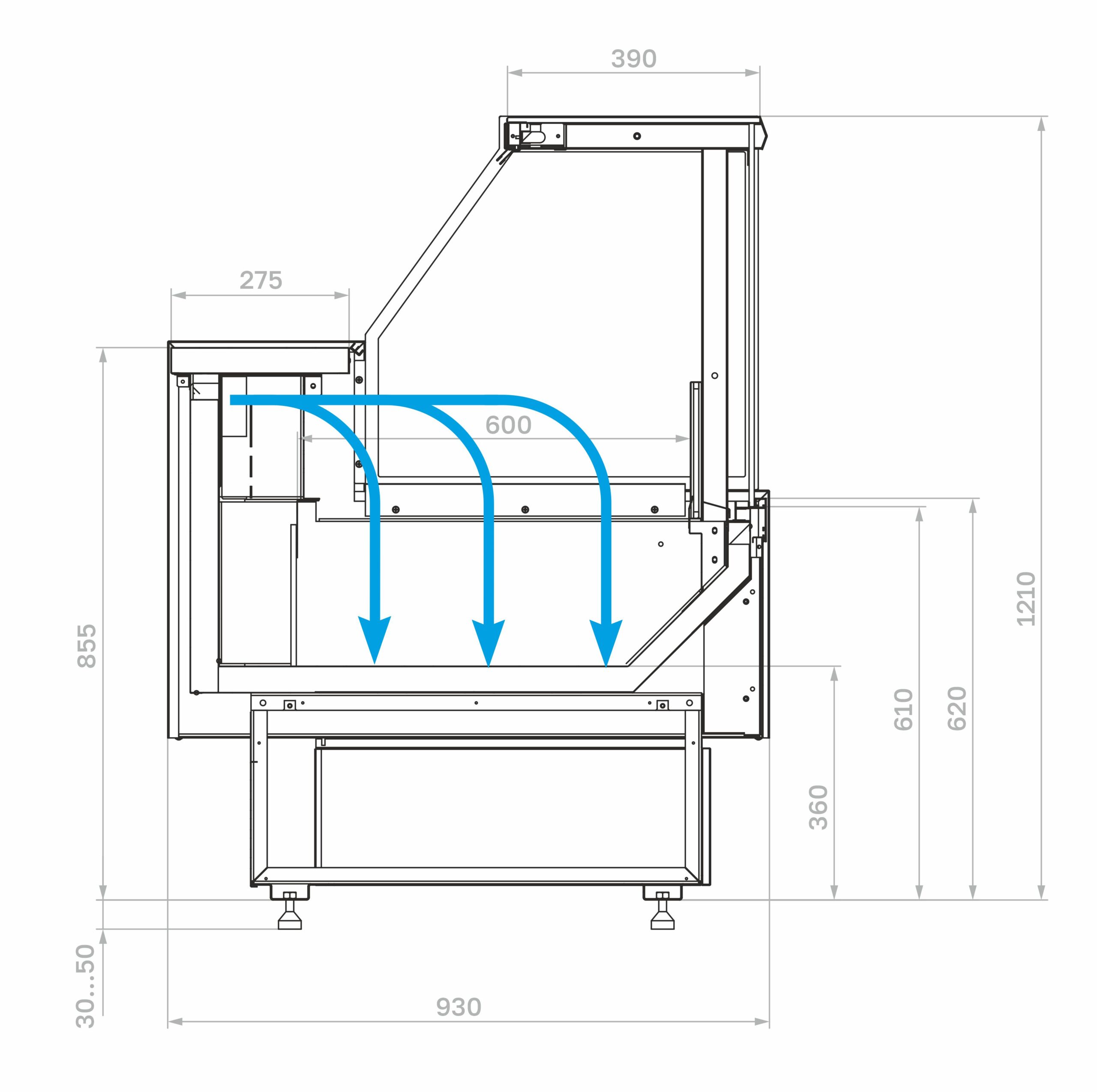 Стандартная комплектация низкотемпературной холодильной витрины Carboma Palm 3 GC95 SL 2,0-1 (версия 2.0) без боковин