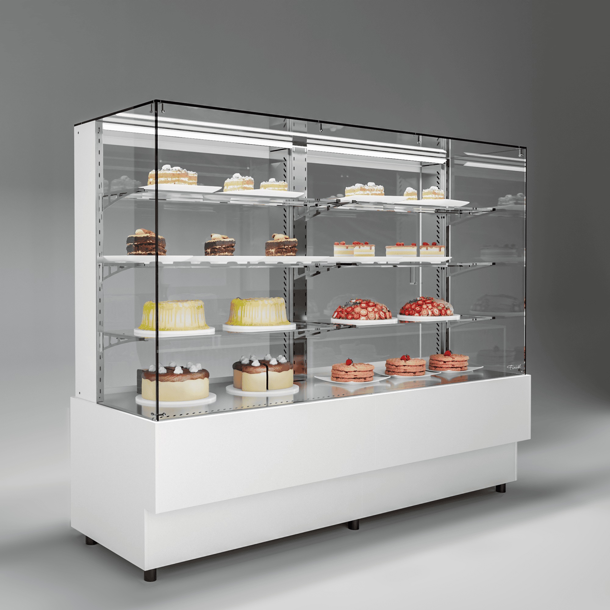 Напольная кондитерская витрина AIR DOUBLE предназначена для экспозиции и временного хранения кондитерских изделий. Аккуратный фасад делает витрину более открытой, а десерты – ближе и доступнее для покупателя.