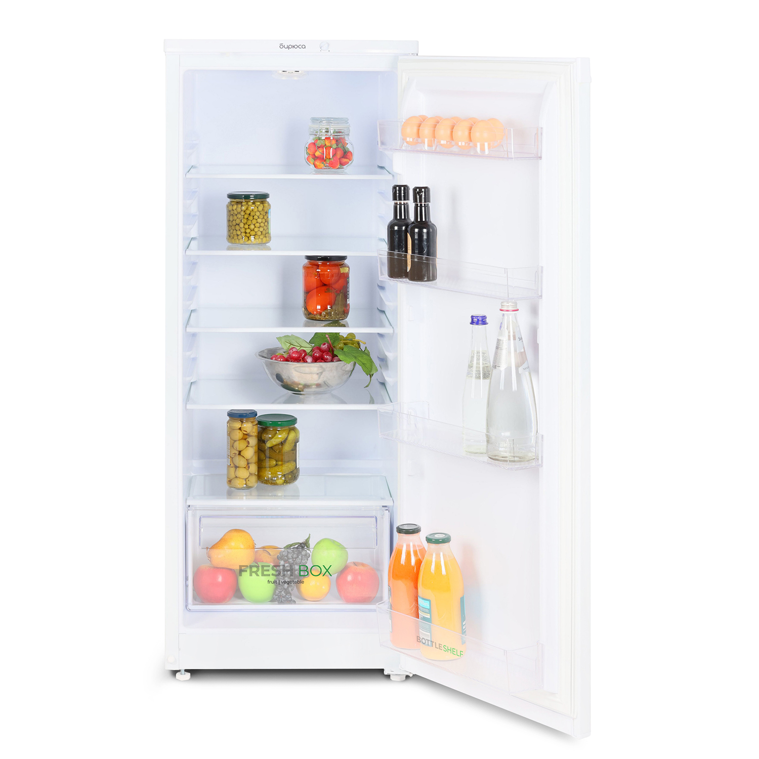 Узкий однокамерный холодильник Бирюса 411 без морозильного отделения. Особенности: