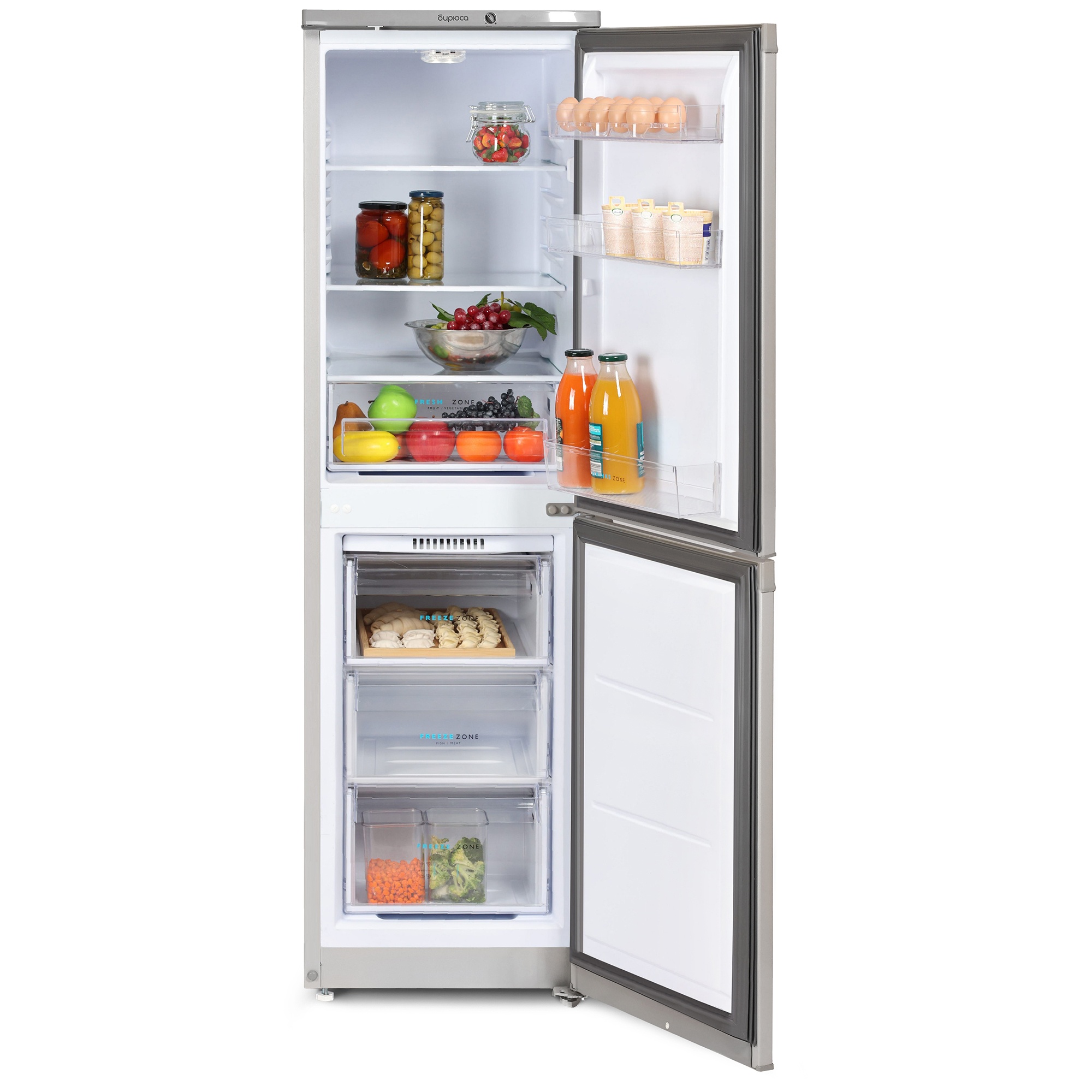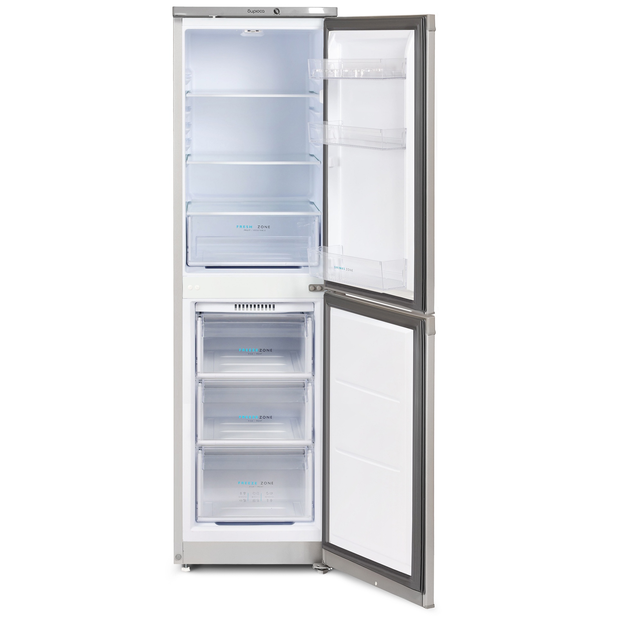 Узкий двухкамерный холодильник Бирюса M420 с нижней морозильной камерой. Особенности: