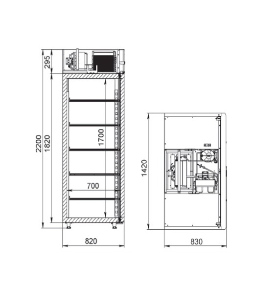 Холодильный шкаф V1.4-Sc выполнен с кассетным исполнением холодильного агрегата: испаритель перемещен из охлаждаемого объема на единую платформу с конденсаторным блоком во внешнем габарите холодильника. Преимущества кассетного исполнения: