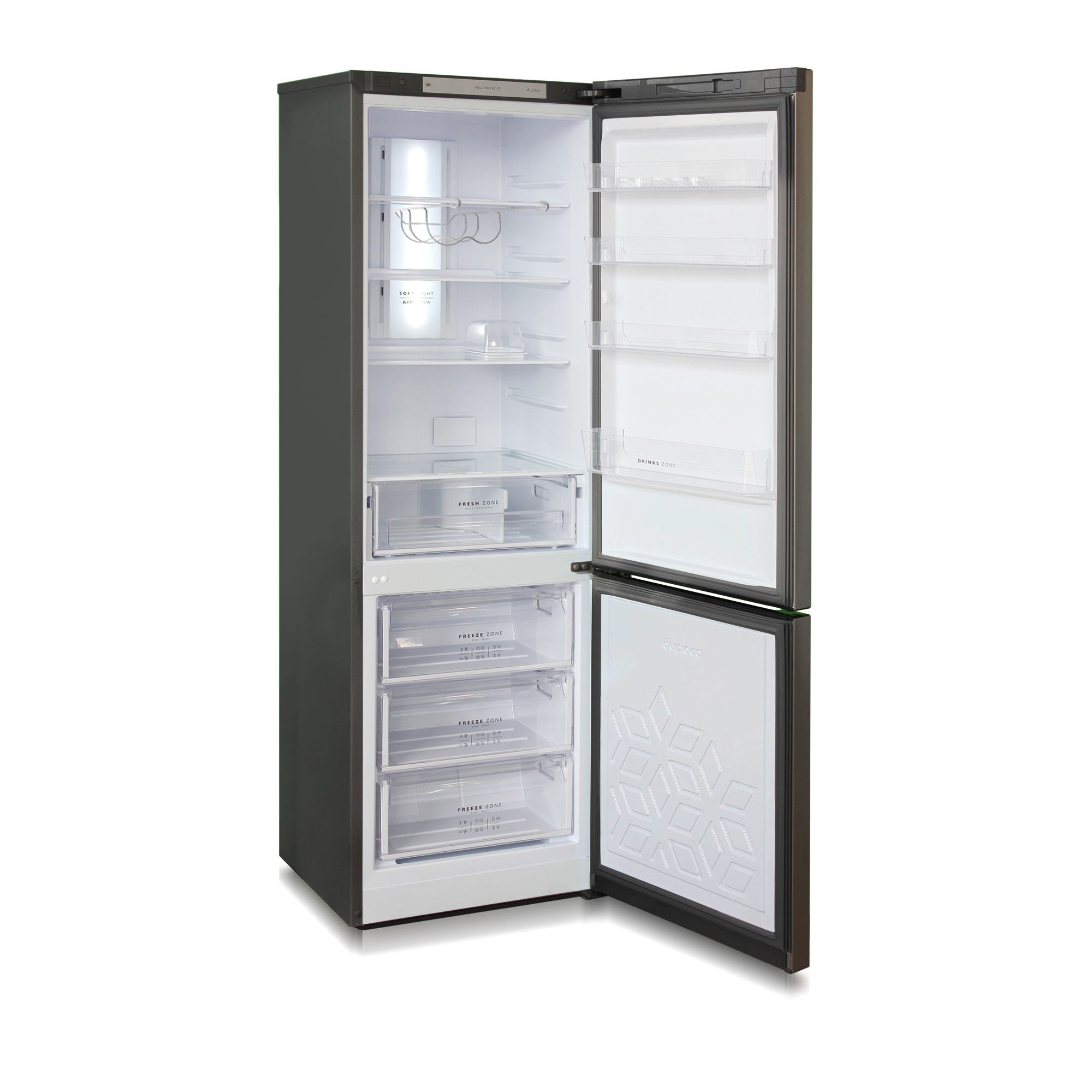 Двухкамерный холодильник Бирюса I960NF с нижней морозильной камерой с системой Full No Frost с дисплеем на двери