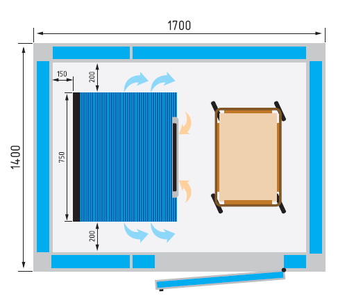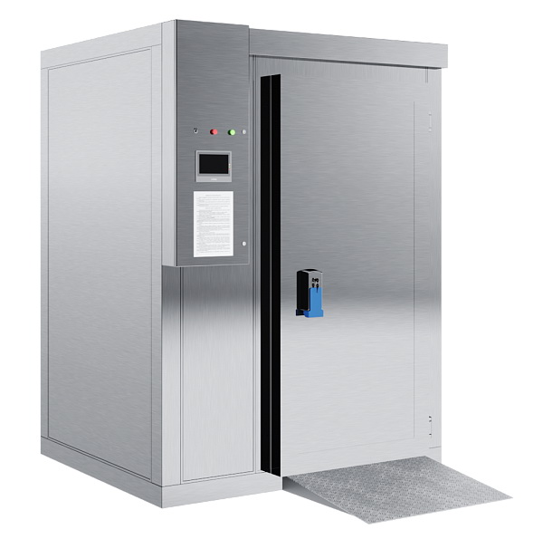 Камера шоковой заморозки Polair BCF 20.1.T1предназначена для быстрого замораживания продукции в промышленных объемах. Оборудование представляет собой конструкцию из сэндвич-панелей с теплоизоляцией 100 мм, за хладообеспечение отвечают внешний блок (компрессорно-конденсаторный агрегат) и внутренний блок (воздухоохладитель). Для загрузки продукции используется 20-уровневая тележка под гастроемкости GN1/1 или противни 400х600 мм. У камеры предусмотрен пандус для удобного закатывания тележки. Внутренняя обшивка камеры — нержавеющая сталь, снаружи камера имеет покрытие из окрашенной стали.