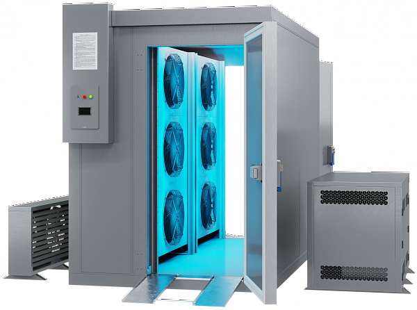 Камера шоковой заморозки и интенсивного охлажденияPolair BCF 80.1.T4— новое решение для предприятий, изготавливающих большое количество пищевых полуфабрикатов, которые необходимо быстро заморозить и хранить длительное время. Камера представляет собой конструкцию из сэндвич-панелей 100 мм, внутри установлен воздухоохладитель, соединенный с выносным блоком — компрессорно-конденсаторным агрегатом. Холодильная система обеспечивает охлаждение 300 кг продукции за 1,5 часа и замораживание 240 кг продукции за 4 часа. Продукция размещается в гастроемкостях или противнях, установленных на двух тележках по 20 уровней.