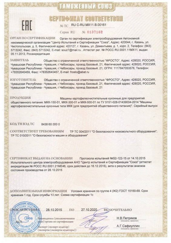 Abat МКК-500-01– профессиональная картофелечистка, отличающаяся повышенной производительностью. Модель подходит для установки в пунктах общественного питания и на пищевых производствах. Аппарат предназначен для очистки корнеплодов (картофеля, моркови, свеклы), он снимает до 95% кожуры. Картофелечистка позволяет повысить эффективность работы персонала, поднять уровень производительности.