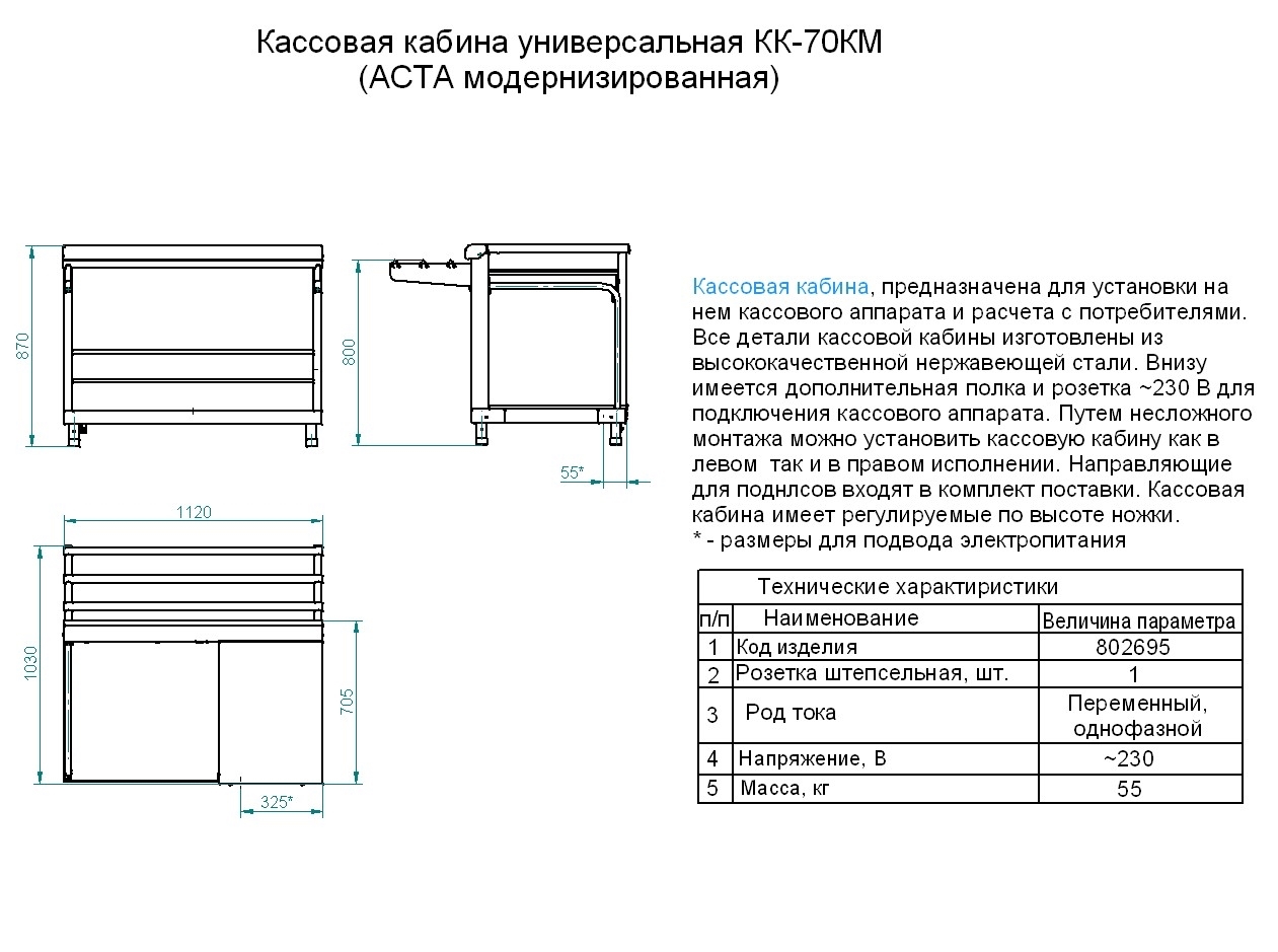 • кассовая кабина Abat КК-70КМ универсальная столешница нерж.;