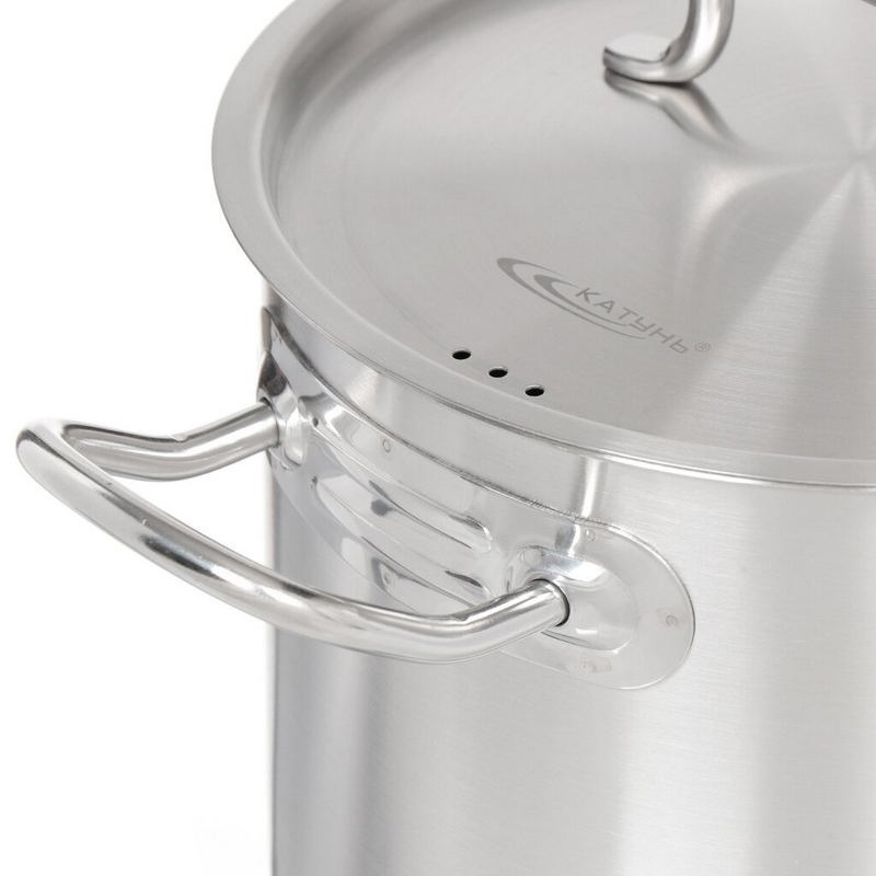 Катунь КТ-ОБ-03представляет собой кастрюлю, рассчитанную не только на бытовое, но и профессиональное применение. Изделие выполнено из нержавеющей стали. Металл отличается высокой прочностью, устойчивостью к развитию коррозии. Прутковые рукоятки имеют нержавеющую форму.