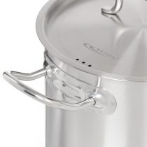 Катунь КТ-ОБ-02 представляет собой кастрюлю, рассчитанную не только на бытовое, но и профессиональное применение. Изделие выполнено из нержавеющей стали. Металл отличается высокой прочностью, устойчивостью к развитию коррозии. Прутковые рукоятки имеют нержавеющую форму.