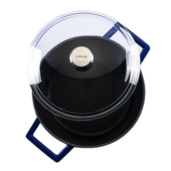 Кастрюля LAVA GLAZE SERIES 4,49 л, D 240 мм, H 125 мм синяяпрекрасно подходит для приготовления разнообразных блюд путем тушения и томления. Корпус изделия выполнен из качественного чугуна с высоким показателем теплоемкости, на который нанесено противоударное эмалированное покрытие. Для переноса предусмотрены литые рукоятки. В комплект входит стеклянная прозрачная крышка, позволяющая контролировать ход приготовления.