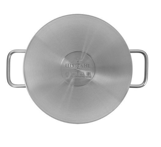 Кастрюля производится из высококачественной нержавеющей стали 18/10 имеет трехслойное капсульное дно толщиной 4,2 мм, которое обеспечивает быстрый и равномерный подогрев пищи и исключает ее пригорание.