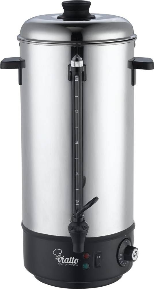 Viatto VA-WB10– кипятильник заливного типа объемом 10 литров. Устройство предназначено для нагрева, кипячения и поддержания в горячем виде воды. Для этого в конструкции предусмотрен ТЭН закрытого типа. Аппарат прекрасно подходит для использования в пунктах общественного питания (кафе, заведениях по продаже фаст-фуда, столовых). Модель отличается высокой прочностью, корпус выполнен из нержавеющей стали и пластика. В конструкции с одинарными стенками предусмотрен разливной краник с нажимным механизмом. Дополнительно в аппарате присутствует окошко со шкалой для контроля уровня воды.