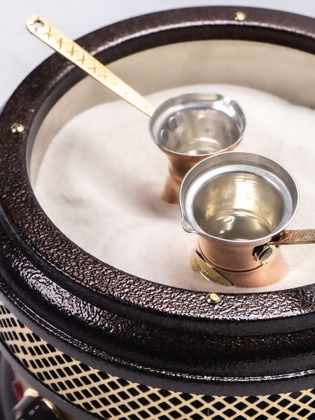 Монтаж электроприбора осуществляется на ровной, жесткой поверхности. Кофейный аппарат не должен находиться рядом с легко воспламеняемыми веществами, водой. Для приготовления крепкого кофе по-арабски в наполненную мельчайшим кварцевым песком круглую платформу устанавливают турку с водой и кофе тонкого помола и медленно томят до появления пенки, но не давая закипеть смеси. В процессе создания напитка джезву вращают. Кофе получается очень ароматный, с глубоким характерным вкусом.
