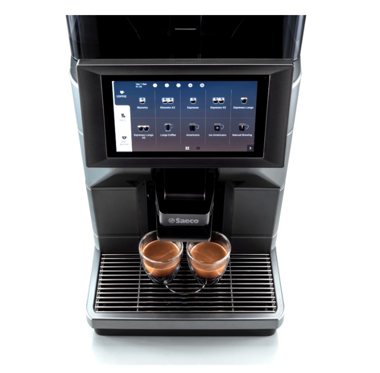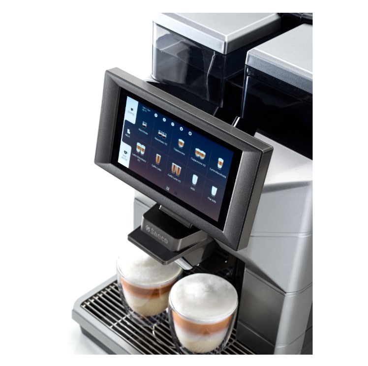 Saeco Magic представляет инновационное семейство кофеварочных машин, которые обеспечивают повышенную производительность в сочетании с удобными функциями и современным дизайном. Профессиональная кофемашина Saeco Magic имеет расширенную камеру: она способна вместить от 8,5 до 15 г кофе. Его количество при дозировке регулируется на дисплее. Цветной сенсорный экран с диагональю 7 дюймов обеспечивает простую навигацию по меню и широкому ассортименту напитков. Дозаторы кофе, молока и воды установлены в одном блоке. Это облегчает установку и регулировку высоты (от 75 до 160 мм), дает возможность использовать разные типы чашек. Актуальная цена кофемашины Saeco Magic указана в правой части страницы.