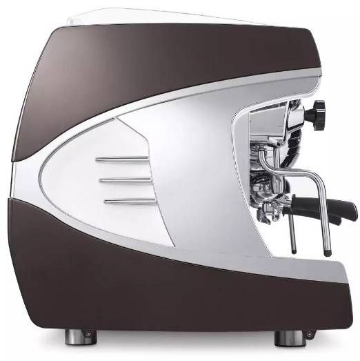 Кофе-аппарат оснащен автоматическим заполнением водой, диспенсером подачи горячей воды и трубкой пароотвода. Подсвечиваемая кнопочная панель управления над каждой группой для выбора 6 дозировок кофе. Машина работает на молотом кофе. Три варианта цветового исполнения — черный хром, белый хром, коричневый хром.