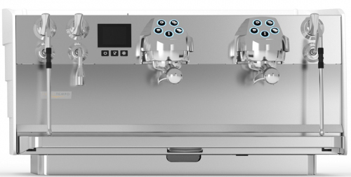 - Машина имеет стильный дизайн, подсветку групп, TOUCHSCREEN дисплей, 5 кнопок для предварительной установки нужного объема воды на каждой группе;