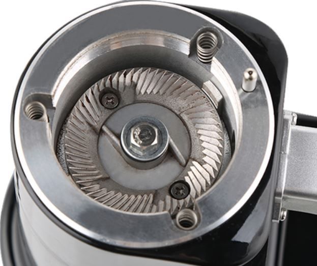 Предусмотрена гибкая бесступенчатая регулировка степени помола с помощью поворотного переключателя. Измельчение происходит с помощью специальных жерновов, изготовленных из высокопрочной нержавеющей стали. Молотый кофе подается в специальный бункер. Он выполнен из прозрачного пластика. Материал не влияет на вкус или цвет кофе.