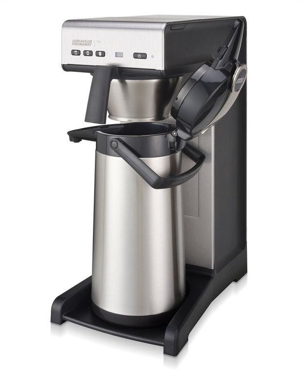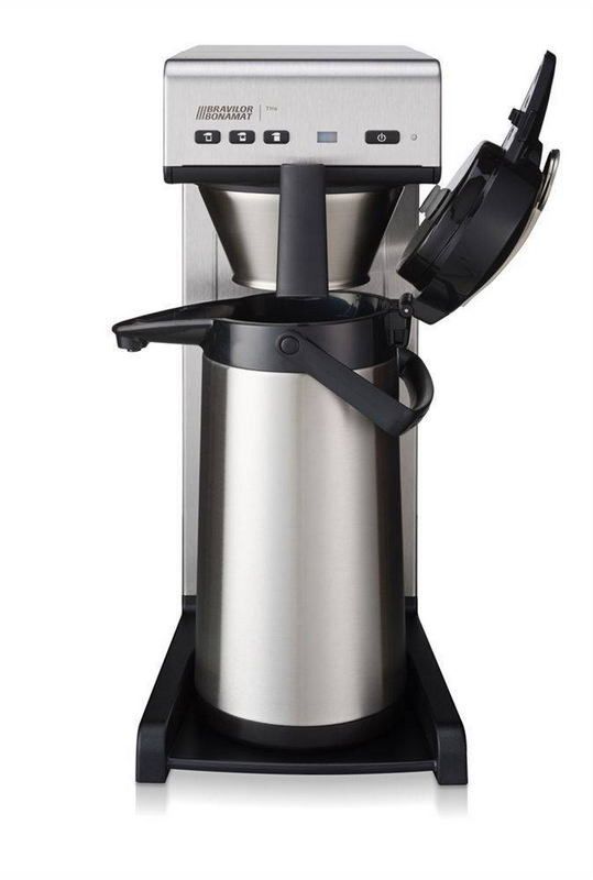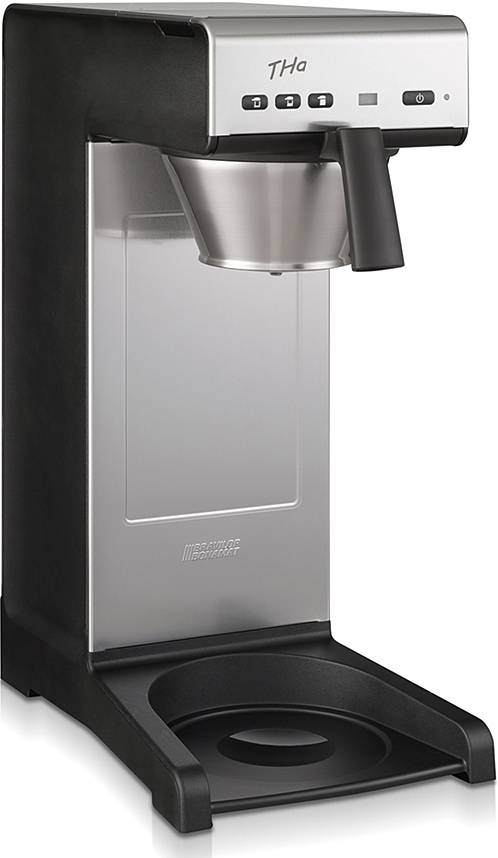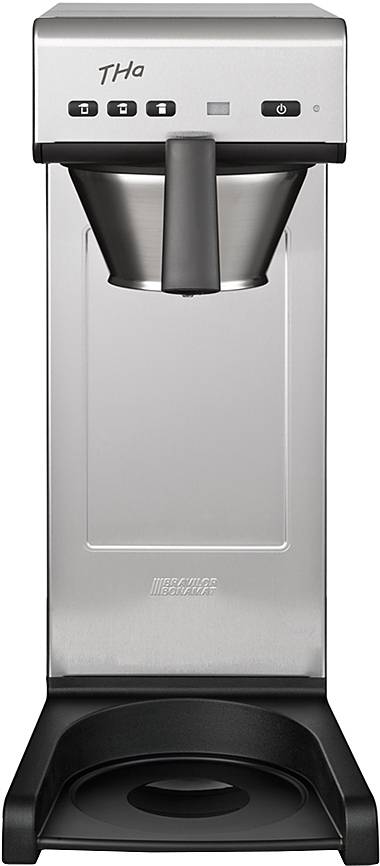 Кофеварка BRAVILOR BONAMAT THA— кофеварка с подключением к воде, автоматической подачей воды оснащена электронной панелью управления, сигналом «кофе готов» и индикатором образования накипи. Модель предназначена для подачи фильтрованного кофе в термос (приобретается отдельно). Постоянное высокое качество кофе обеспечивается благодаря точной дозировке воды. Заваривание кофе происходит прямо в кофейник или в термос, но сам термос в комплект не входит.