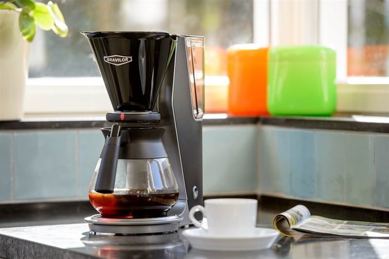 BRAVILOR BONAMAT Junior Blackпредставляет собой капельную кофеварку для оснащения торговых точек, пунктов общественного питания, а также домашнего использования. Модель предназначена для приготовления фильтр-кофе. На распылительной головке предусмотрено несколько форсунок, что обеспечивает контакт горячей воды с молотым кофе одновременно в нескольких точках. Такая система обеспечивает оптимальную экстракцию. Благодаря автоматическому регулированию нагревательного элемента в соответствии с количеством кофе в графине нагревательная плита поддерживает идеальную температуру кофе. В соответствии со стандартами ЕС, Junior автоматически выключается приблизительно через 40 минут бездействия.