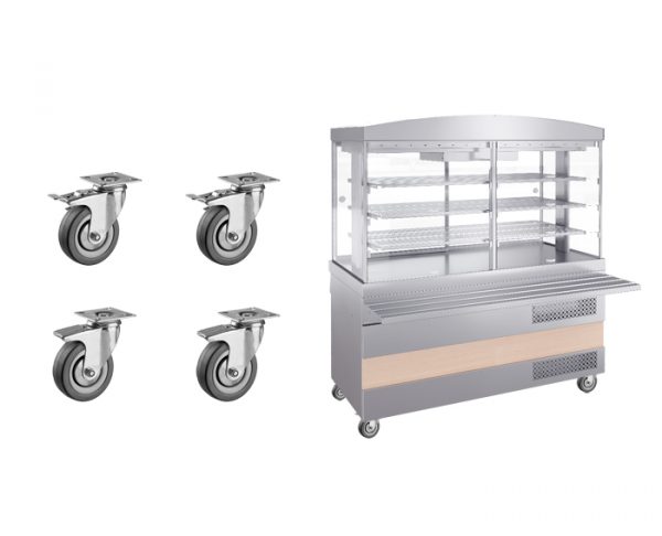 Комплект колес для электр. модуля Атеси Ривьера предназначен для организации транспортировки мармитов, кассовых столов, модулей для подогрева тарелок, охлаждаемых столов, прилавков для горячих напитков, холодильных столов. В комплекте 4 колеса, два из которых снабжены стопорами. В конструкции предусмотрен шнур питания с вилкой и кабельный ввод. Для намотки кабеля присутствует специальный кронштейн, защищающий его от повреждения в процессе движения.