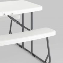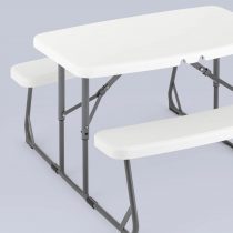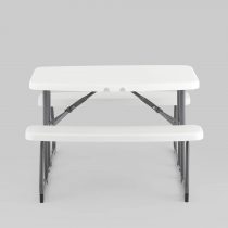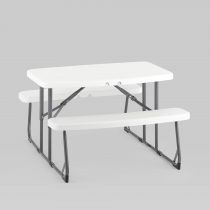 Комплект складной мебели для детей из пластикового стола и двух скамеек прекрасно подойдет для организации детских мероприятий на природе. Модель отличается сдержанным и универсальным видом.