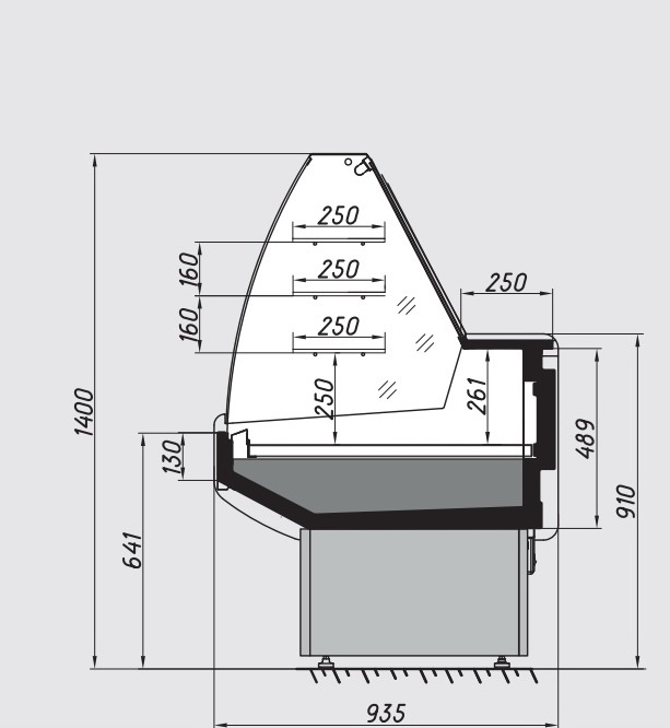 Стандартная комплектация кондитерской витрины Альтаир: