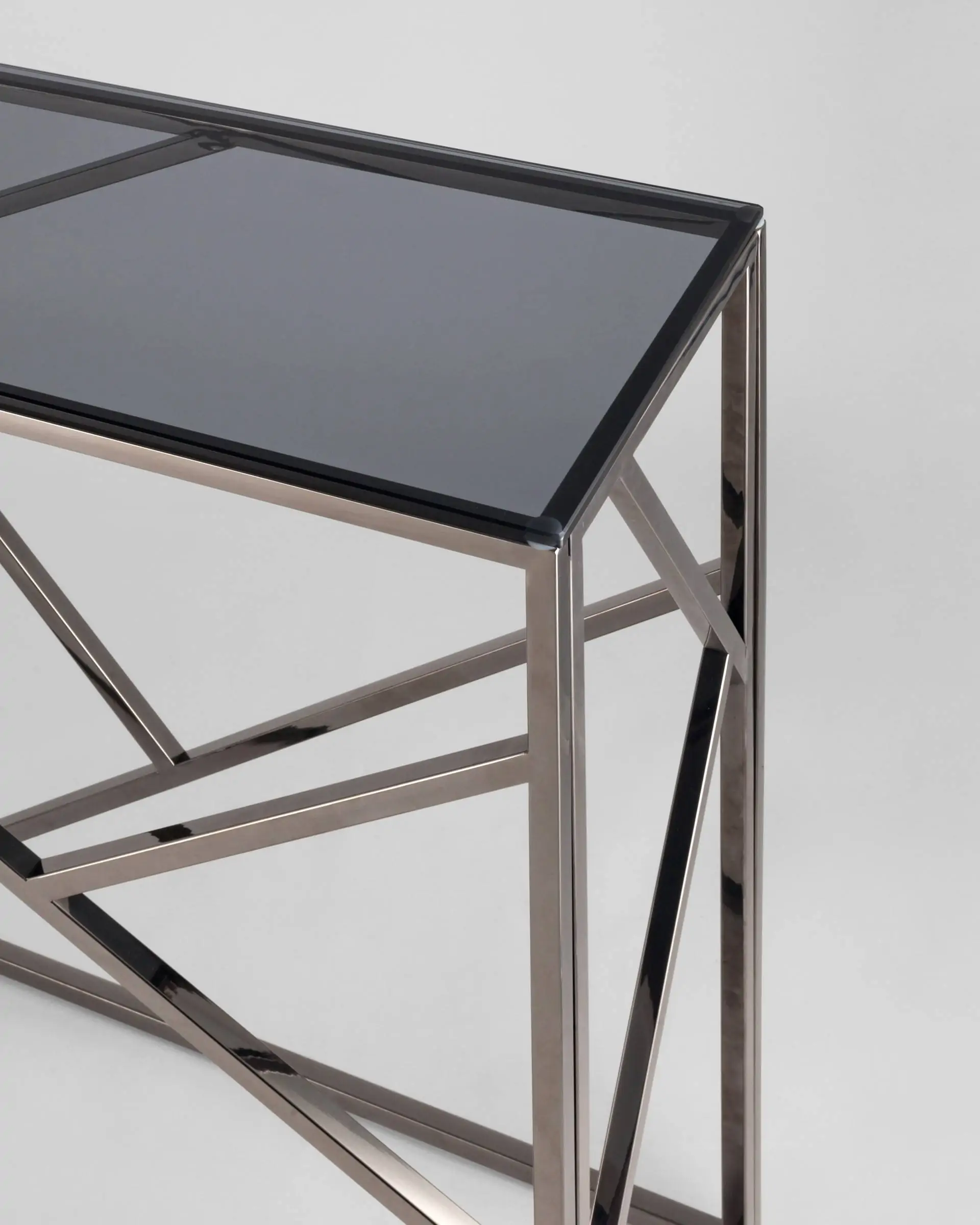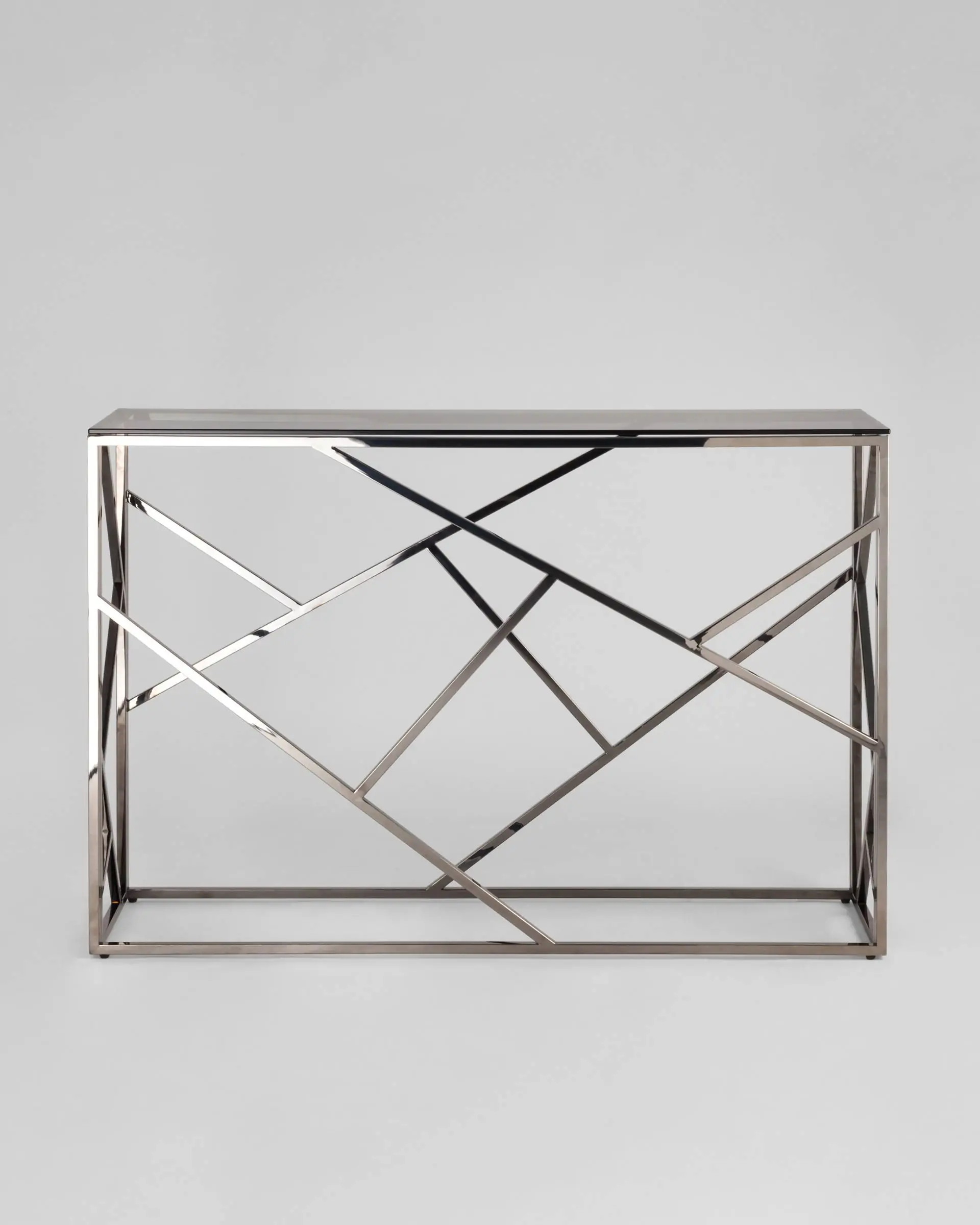 Столешница выполнена из дымчатого закаленного стекла, которое обладает повышенной прочностью и стойкостью к перепадам температур, способно выдерживать большие нагрузки.