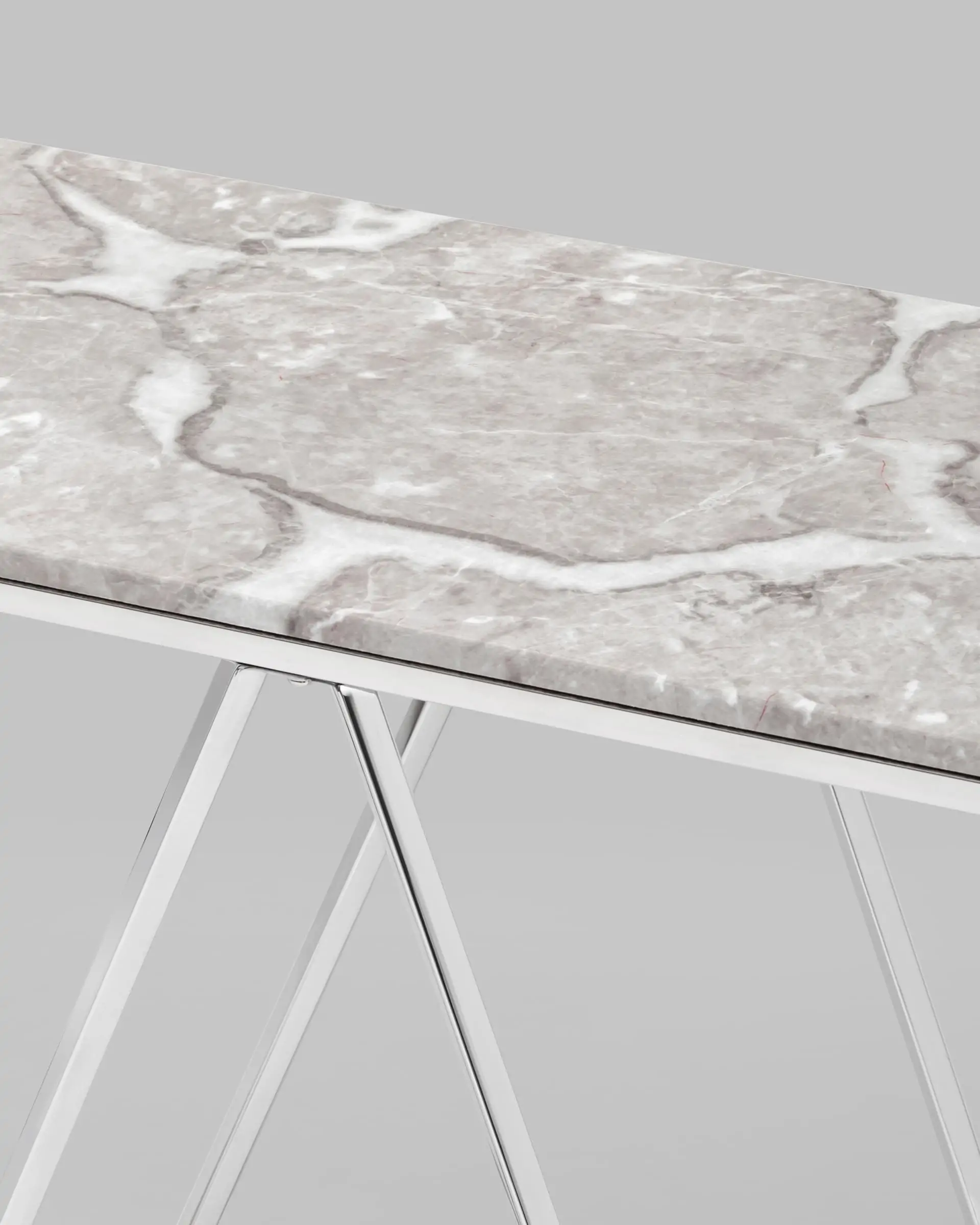 Столешница выполнена из искусственного мрамора в сером цвете, который обладает высокой механической прочностью, способен выдерживать большие нагрузки. Влагостойкий и не впитывает загрязнения.