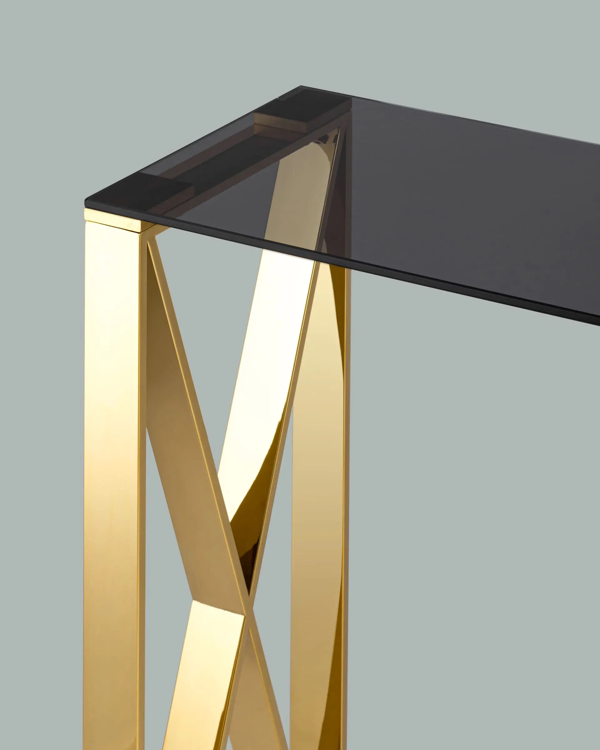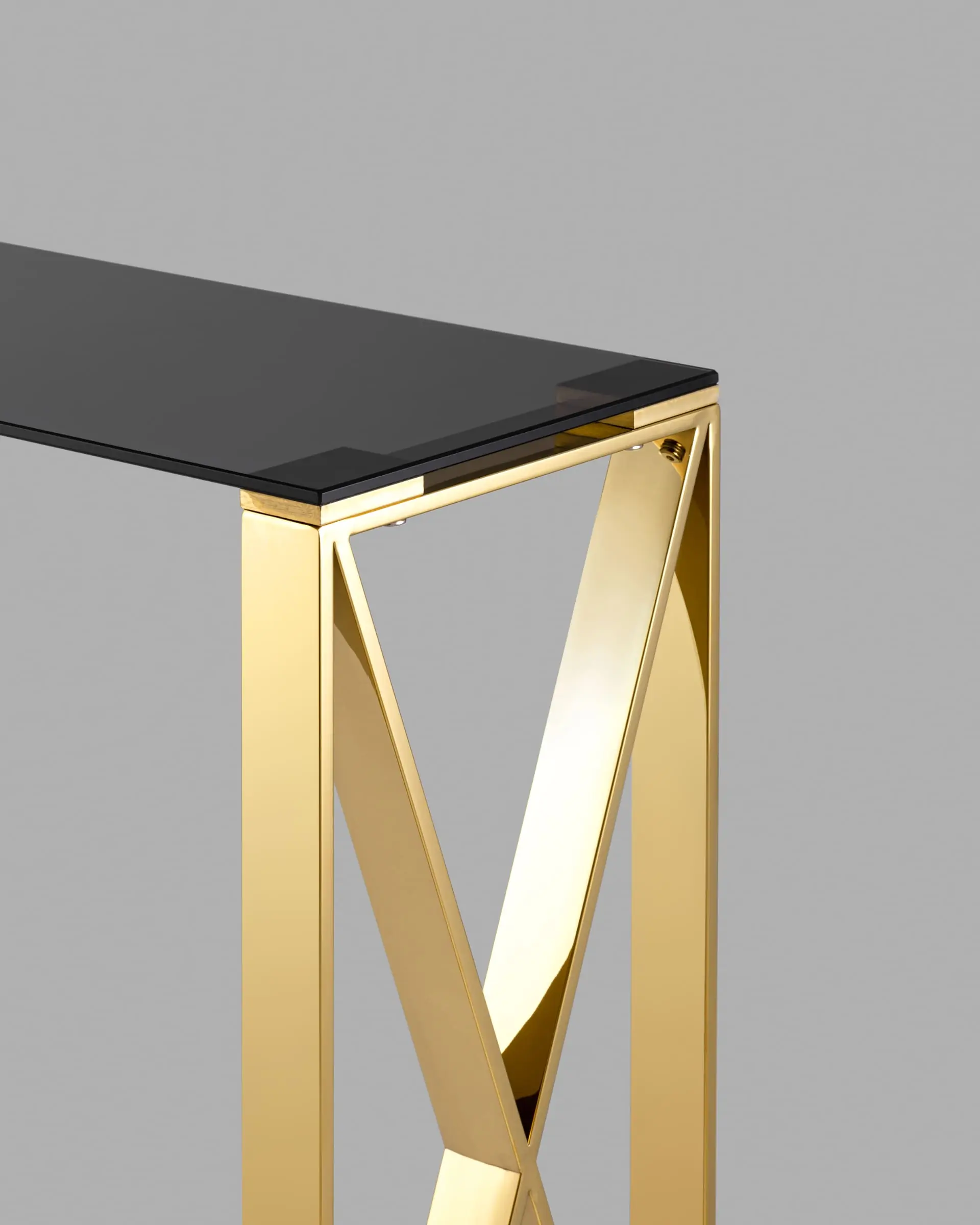 Узкий консольный столик. Оригинальная форма ножек, пересекающихся в виде буквы «X», добавляет динамичность и стиль, делая столик ярким акцентом в интерьере.