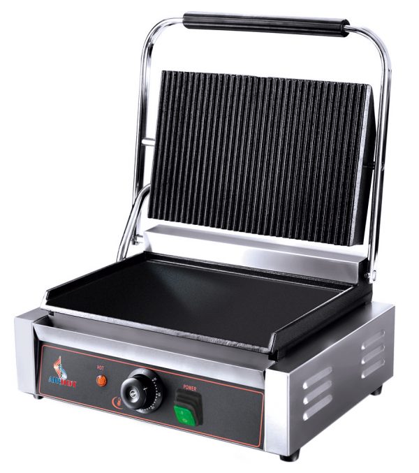 Контактный гриль Airhot CGL-FG имеет одну рабочую зону и комбинированные поверхности. Устанавливается настольно, позволяет быстро и с характерным рисунком обжаривать мясо, рыбу, готовить сендвичи и многие другие продукты. На нём можно готовить не только с закрытой крышкой, но и откинутой. Качество прожарки обеспечивается термостатом. Лишний жир стекает в специальный поддон.