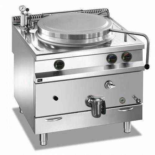 Бак изготовлен из нержавеющей стали 304 AiSi (дно из 316 AiSi), данный сплав устойчив к воздействию агрессивных моющих средств, щелочных растворов, различных кислот, невосприимчив к любым острым и сладким продуктам. Нагрев производится сквозь водяную рубашку, что уберегает бак от нежелательного пригорания. Имеет краны для наполнения и слива воды.